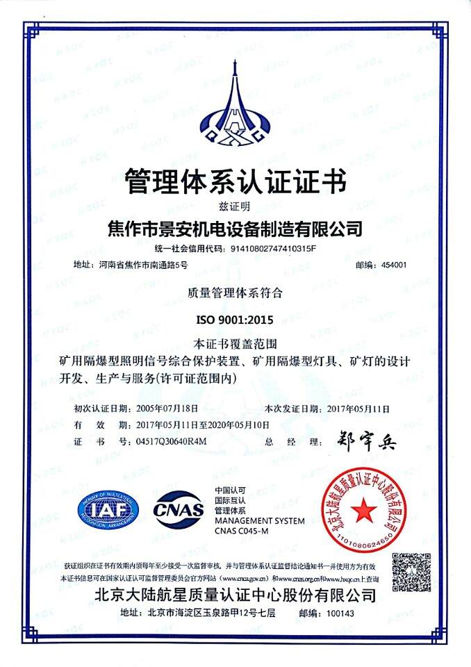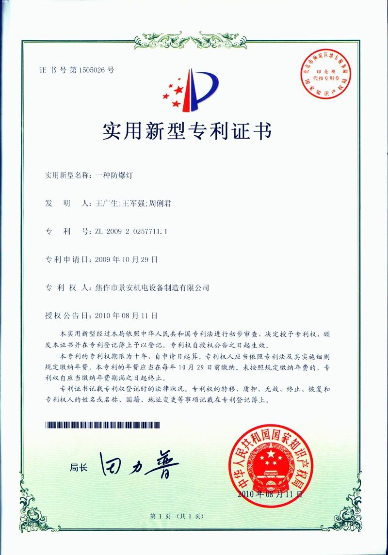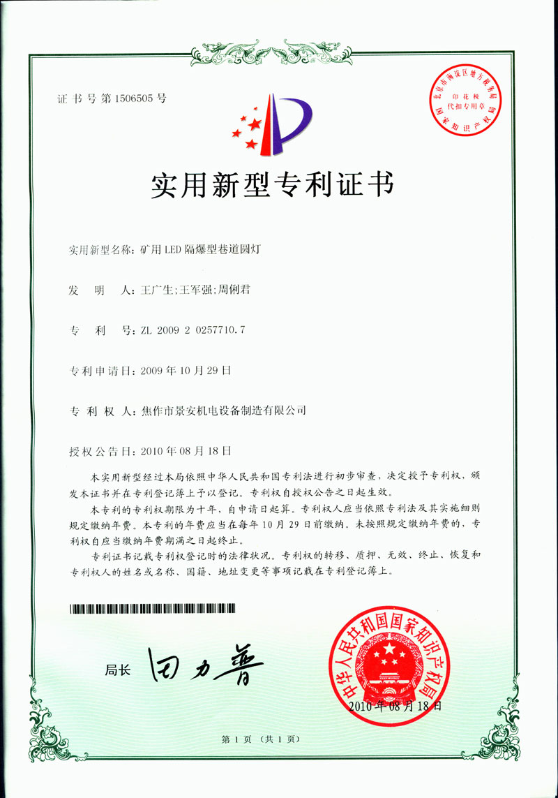 焦作景安公司始終堅持“以科技為先導(dǎo),以市場為導(dǎo)向”的發(fā)展戰(zhàn)略,不斷進行新產(chǎn)品的研制和開發(fā),在國家“六五”到“九五”期間,承擔和參與了國家多項科技攻關(guān)項目。并被中國電器工業(yè)協(xié)會評定為“質(zhì)量可信產(chǎn)品”。特別是在礦用防爆燈領(lǐng)域,礦用隔爆型半導(dǎo)體(LED)照明燈具,2008年列入國家火炬計劃,獲2009年河南省工業(yè)和信息化廳的科技成果二等獎,并擁有多項國家專利。 |